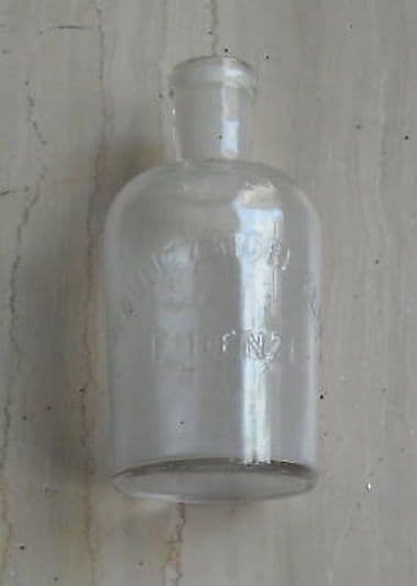 Nebulizzatore Elios Firenze Interessante antica bottiglia in vetro chiaro, in origine barattolo contenitore di un composto chimico-farmaceutico prodotto in Toscana, a Firenze, dalla ditta Elios; *le scritte pubblicitarie sono impresse a rilievo su una delle facciate della bottiglia; specularmente all'opposto vi è impressa altra scritta in rilievo "Made in Italy", probabilmente ad indicare un prodotto che all'epoca veniva anche esportato all'estero.* Misura cm. 10 (altezza); databile primo '900. Di interesse specialistico, farmaceutico, pubblicitario, storico-locale toscano e collezionistico Buona conservazione generale, usuali segni o difetti d'uso e d'epoca, bottiglia ovviamente vuota del suo originario contenuto, il tutto così come dalle immagini allegate, così come rinvenuto in una vecchia soffitta di famiglia.