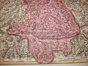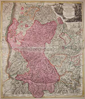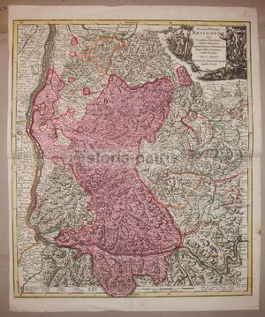 Rara mappa geografica antica di grande formato, curata dal noto cartografo Matthäus Seutter. L'opera descrive dettagliatamente la regione della Brisgovia e i territori dell'Austria Anteriore, illustrando i confini del Sacro Romano Impero verso occidente.