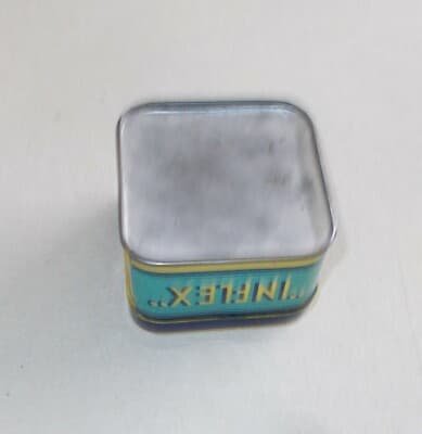 **Antico fodero o astuccio** di forma triangolare con apertura superiore, originariamente destinato al trasporto di accessori per la caccia, munizioni o piccole armi. * **Materiale**: Cartoncino telato. * **Dimensioni**: 16x18x2,5 cm circa. * **Dettagli**: Stampigliatura a secco circolare sulla facciata anteriore con monogramma figurato (possibile marchio **MI**). * **Epoca**: Prima metà del '900 (circa anni '20). * **Stato di conservazione**: Modesta. Presenta tracce di polvere, spellature, scuciture ed erosioni marginali. Rotture alle cinghiette superiori e un foro laterale. L'astuccio è privo del contenuto originale. Oggetto di elevato interesse per il collezionismo di settore e la decorazione d'interni a tema venatorio.