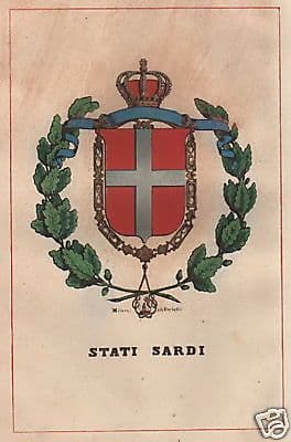 Stemma Araldico Stati Sardi Casa Savoia Litografia 1857 Bertotti