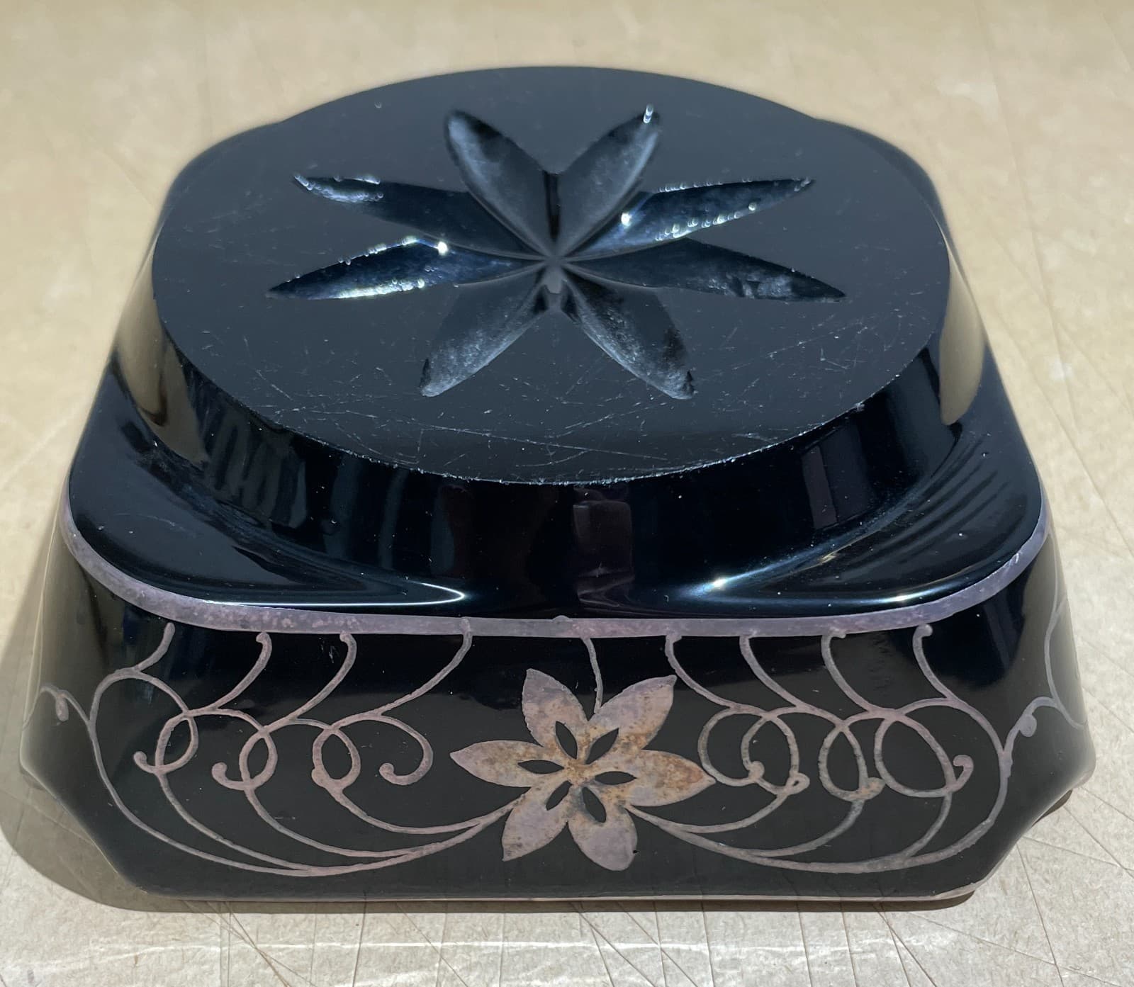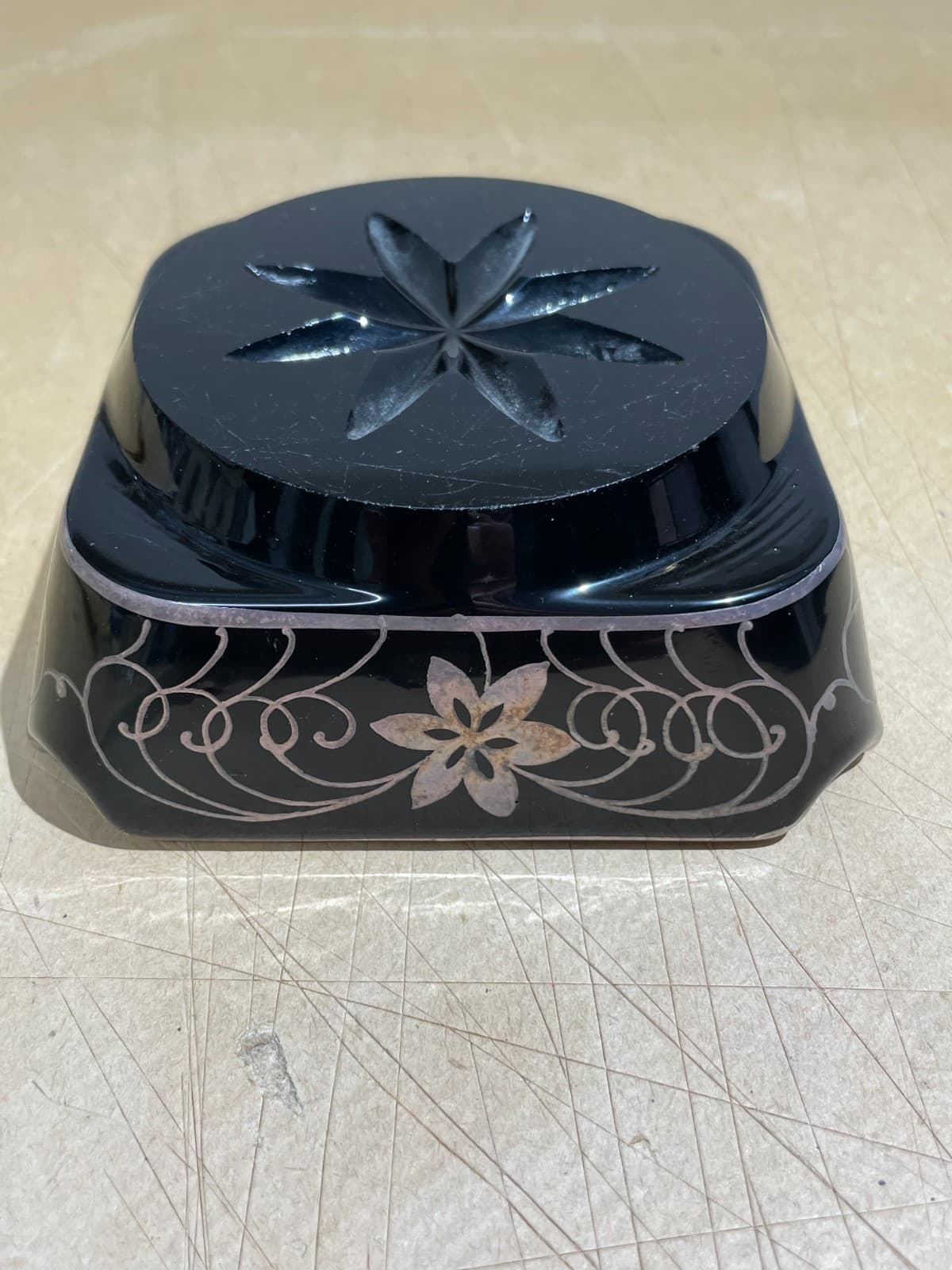 Interessante oggetto da toilette, un **pettine per capelli** con supporto in metallo argentato, caratterizzato da un raffinato decoro artistico inciso su entrambi i lati. **Dettagli tecnici:** * **Dimensioni:** circa 11 cm (lunghezza massima) x 4 cm (larghezza massima). * **Materiale:** Supporto metallico punzonato con il titolo 800, indicativo di una lega in argento. * **Epoca:** Prima metà del XX secolo (periodo stimato tra gli anni '20 e '50). **Stato di conservazione:** L'esemplare si trova in discreta conservazione generale. Presenta i consueti segni del tempo e dell'uso, quali ossidazione diffusa, piccole ammaccature e abrasioni superficiali. L'oggetto è meritevole di una pulitura professionale per ripristinare l'originaria lucentezza.
