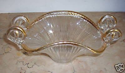 Decorativo soprammobile Elegante cestino in vetro, con bella decorazione e con due artistici manici, con anche sobria laminatura in oro lungo i bordi ed i manici. Misura circa cm. 20 x 11,5 x 9; databile in periodo liberty o decò.  Da collezione! Buona conservazione generale, usuali segni o difetti d'uso o d'epoca, inevitabile leggera usuara della laminazione dorata, ma oggetto sempre tenuto ben conservato in vetrina, il tutto così come da immagini allegate.