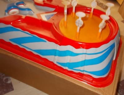 **Bovino** in celluloide raffigurante una mucca, realizzato in Italia nella metà del XX secolo. * **Soggetto**: Mucca con dettagli realistici, colorazione rosata e mammelle visibili. * **Materiale**: Celluloide (plastica d'epoca), struttura leggera. * **Dimensioni**: 14x5 cm circa (altezza massima 7 cm). * **Stato di conservazione**: Modesto. Presenta segni d'uso, tracce di polvere e mancanze strutturali (orecchio e corno sinistro rotti). * **Note**: Oggetto di interesse per collezionisti di giocattoli d'epoca, zootecnia e memorabilia rurale.