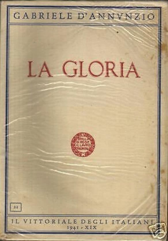 **Gabriele d'Annunzio** **La gloria** Roma, Il Vittoriale degli Italiani, 1941. Cm. 23 ca., pp. 144, bross. edit. Interessante antica edizione dell'appassionante dramma di Gabriele d'Annunzio, datato nel 1899. In quegli anni l'intimità già esistente da alcuni anni con la Duse si era fatta ancora più forte; e il Vate viveva abitualmente a ***Settignano*** nella ***villa "La Capponcina***" presso la "***Porziuncola***" della Duse. Dopo averla seguita in ***Egitto*** e in ***Grecia***, accanto a lei compone il dramma, a ***Corfù***, ed è la Duse a strappare il successo del precedente dramma, ***La Gioconda***, nella primavera 1899 recitandolo insieme a ***Zacconi***. Buona conservazione generale, usuali segni o difetti d'uso e d'epoca. Della stessa serie sono disponibili i seguenti altri volumi: *Francesca da Rimini (1940)* *La città morta (1940)* *La nave (1941)* *La fiaccola sotto il moggio (1939)* *Fedra (1939)* *Parisina - La crociata degli innocenti - Cabiria (1939)* *Le martyre de saint Sébastien (1939)* *Più che l'amore (1941)* *I sogni delle stagioni (1941)* Della serie simile (cm. 20 ca.): *Trionfo della morte (1940)* *Le faville del maglio (1942)* *Le primavere della mala pianta (1939)* *Merope (1939)* *Forse che sì forse che no (1941)* *Il libro ascetico della giovane Italia (1939)* *Le primavere della mala pianta (1941)* *Le vergini delle rocce (1939)* *Alcyone Libro III (1942)* (a richiesta ulteriori informazioni) **Osservate le altre mie aste!** Creato da [Turbo Lister](https://pages.ebay.it/turbo_lister/)