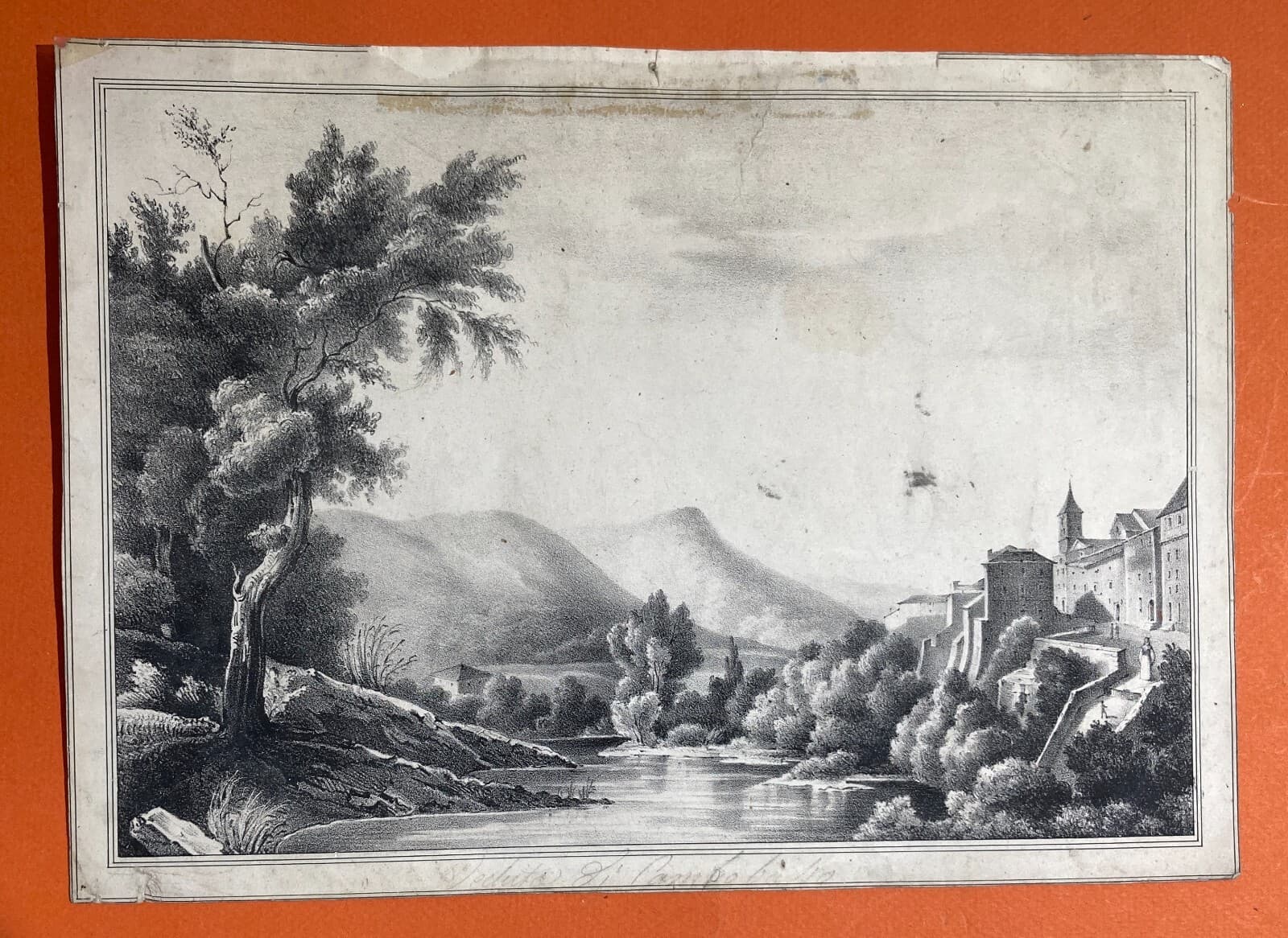 Madonna Con Bambino: Paesaggio Con Colombe. Cromolitografia d'Epoca Di Maldarelli, 1934