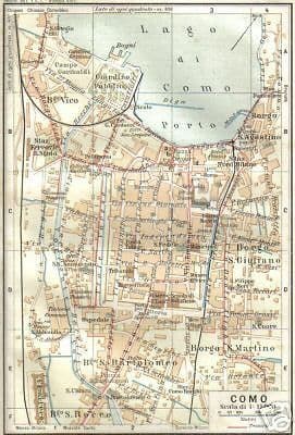 Mappa Antica Como Lombardia TCI Vallardi Inizio 900