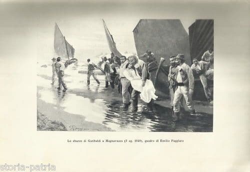Stampa Sbarco Garibaldi Magnavacca 1849 Emilio Paggiaro Risorgimento