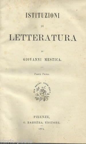 Istituzioni Di Letteratura Giovanni Mestica 1874 Barbera Firenze