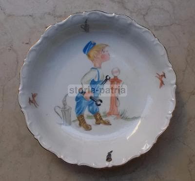 Interessante ceramica ad uso coperchio per zuppiera, caratterizzata da una raffinata decorazione artistica a motivi vari floreali e ornamentali, ripresi con cura anche sul pomolo di presa. L'oggetto rappresenta un elemento di completamento fondamentale per esemplari d'epoca privi della loro copertura originale. * **Materiale**: ceramica o terraglia bianca con decori trasferiti in bruno. * **Dimensioni**: diametro massimo di circa 23 cm. * **Manifattura**: area italiana, databile alla metà o seconda metà dell'Ottocento (attribuibile a **Richard**, **Ginori** o altre storiche manifatture attive nel periodo). * **Conservazione**: lo stato generale è buono, con consueti segni d'uso e del tempo, lievi abrasioni superficiali e tracce di sporco originali.