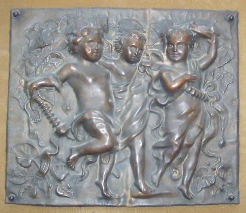 Pannello Liberty Sbalzato Con Angeli E Edera Inizio 900