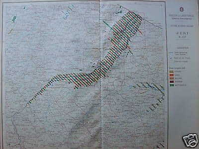 Iesi Interessante cartografia della regione marchigiana comprendente i territori dal litorale adriatico a quelli interni, con visualizzata la viabilità e innumerevoli toponimi, contrade e piccole e grandi località tra cui Cupramontana, Cingoli, Appignano, Montecassiano, Filottrano, Monte Fano, Castelbellino, Serra de' Conti, Ostra Vetere, Corinaldo, Ostra, Morro d'Alba, Iesi, Monte S. Vito, Palombina, Case Bruciate, Agugliano,.... con evidenziato il sistema fluviale e delle acque, *canali derivati da corsi d'acqua, pozzi per uso irriguo, zona non irrigua* *e a colori le zone irrigate dal* *Cesano, Esino, Musone, Potenza, Sottosuolo* praticamente un pò tutto il sistema di irrigazione del territorio preso in esame.  Rara cartografia originale e d'epoca, edita a cura dello Studio Cartografico Giardi (Firenze), su mappa dell'Istituto Geografico Militare di Firenze, per conto del Ministero dei Lavori Pubblici, sezione autonoma di Bologna. Grandi dimensioni, misura cm.41x52 circa; databile circa anni '40. Di interesse tecnico scientifico geologico specialistico, storico-locale, geografico e decorativo Buona conservazione generale, usuali segni d'uso o d'epoca, inevitabile piegatura centrale, meritevole di essere inserita sotto passpartout ed incorniciata.