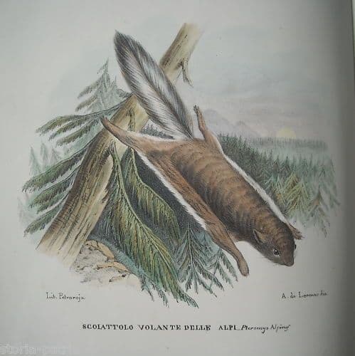 Scoiattolo Volante Delle Alpi Litografia Napoletana Ottocentesca