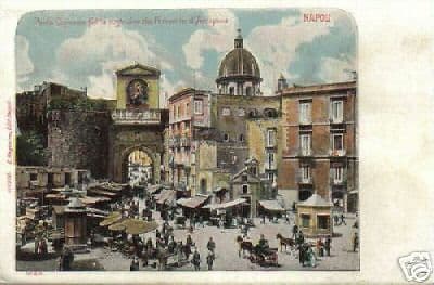 Napoli Porta Capuana, fatta costruire da Ferrante d'Aragona Rara antica bellissima cartolina, originale d'epoca, a colori, raffigurante una animatissima piazza, con numerose carrozze o carrozzelle, viandanti, banchi di vendita, chioschi,...  Piccolo formato, cm. 9x14 circa; non viaggiata; databile fine '800 o primo '900; ediz. Ragozino (Napoli); W&N Di interesse artistico, fotografico, storico locale, urbanistico, collezionistico degna anche di essere montata sotto passpartout ed incornicata. Bella conservazione generale, usuali segni d'uso o d'epoca.  Creato da [Turbo Lister](https://pages.ebay.it/turbo_lister/)