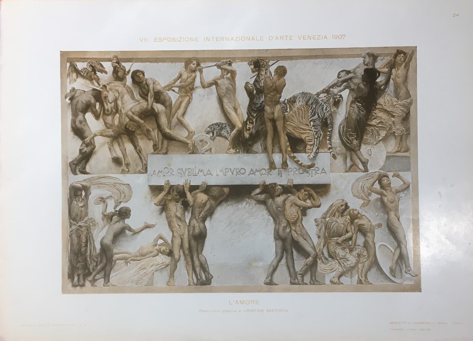 Interessante edizione antica, stampa raffigurante una veduta con alberi, un corso d'acqua e un'area lacustre, con figure femminili lungo un sentiero, una delle quali porta una cesta sulle spalle. Illustrazione ispirata a un dipinto dell'artista austriaco **Karl Kaufmann**; foglio di grandi dimensioni, misura circa cm 38,5x50,5 per la sola parte figurata, impressa su carta brunita originariamente incollata su un grande cartoncino di supporto (dimensioni totali circa cm 60x74,5). * **Tecnica**: Fototipia (?) * **Editore**: Fratelli **Kunzli** * **Periodo**: Fine '800 - primo '900 * **Condizioni**: Modesta conservazione generale con segni e difetti d'epoca: diffuse fioriture, bruniture, sgualciture, ampie gore e difetti marginali; presente un foro in basso al centro. Foglio meritevole di restauro.