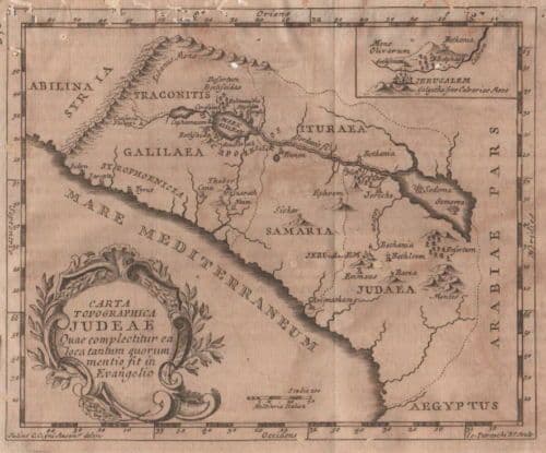 Mappa Antica Giudea Galilea Gerusalemme Cigni Petroschi 1750