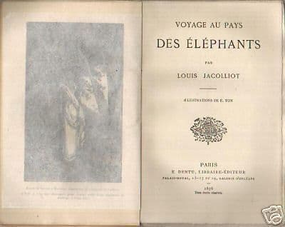 Louis Jacolliot Voyage au pays des éléphants .... Second voyage au pays des éléphants Paris, Dentu, 1876-1877 Cm.19, pp.350+369; bross. edit. figurata (difetti) Pregevole e famosa edizione originale di una importante opera di viaggio, nei due volumi distinti comprendenti sia il primo che il secondo viaggio, qui offerti congiuntamente, entrambi con le bellissime tavole incise fuori testo, eseguite per il primo viaggio da **Yon** mentre per il secondo viaggio le illustrazioni sono di **Riou** Opera in ottima conservazione, ancora a fogli chiusi e con le incisioni ancora protette dalla velina originale.  Di interesse culturale, artistico storico geografico ed etnografico Bella conservazione generale, difetti d'uso o d'epoca, sgualciture o strappetti marginali alle copertine. **@@@@@@** **Importante** **Invito a fare offerte solo se veramente interessati all'articolo,** **e per ogni dubbio in merito chiedere ulteriori informazioni e immagini solo durante l'asta.** **Per facilitare ed accelerare la spedizione, indicare sempre nella causale del pagamento il titolo dell'oggetto acquistato.** **Il pagamento deve essere effettuato entro 3 giorni lavorativi dalla data di chiusura dell'asta (dilazioni di tempo devono essere concordati, salvo per più acquisti a scadenza diversa), in caso contrario chiederò ad Ebay il rimborso delle commissioni e vi segnalerò come *offerente non pagante* lasciandovi un feedback negativo.** **Normalmente e salvo imprevisti spedisco entro il giorno successivo alla ricezione del pagamento.** **Effettuo solo spedizioni certificate da ricevuta (posta raccomandata, pacco normale o celere, corriere) e pertanto evitate di chiedermi spedizioni in posta prioritaria o ordinaria (metodi non sicuri).** **Ogni spedizione viaggia a totale rischio dell'acquirente, che però può cautelarsi indicando un metodo di spedizione o un corriere di sua scelta e gradimento.** *\======* *I invite to watch the others my auctions*  Creato da [Turbo Lister](https://pages.ebay.it/turbo_lister/)