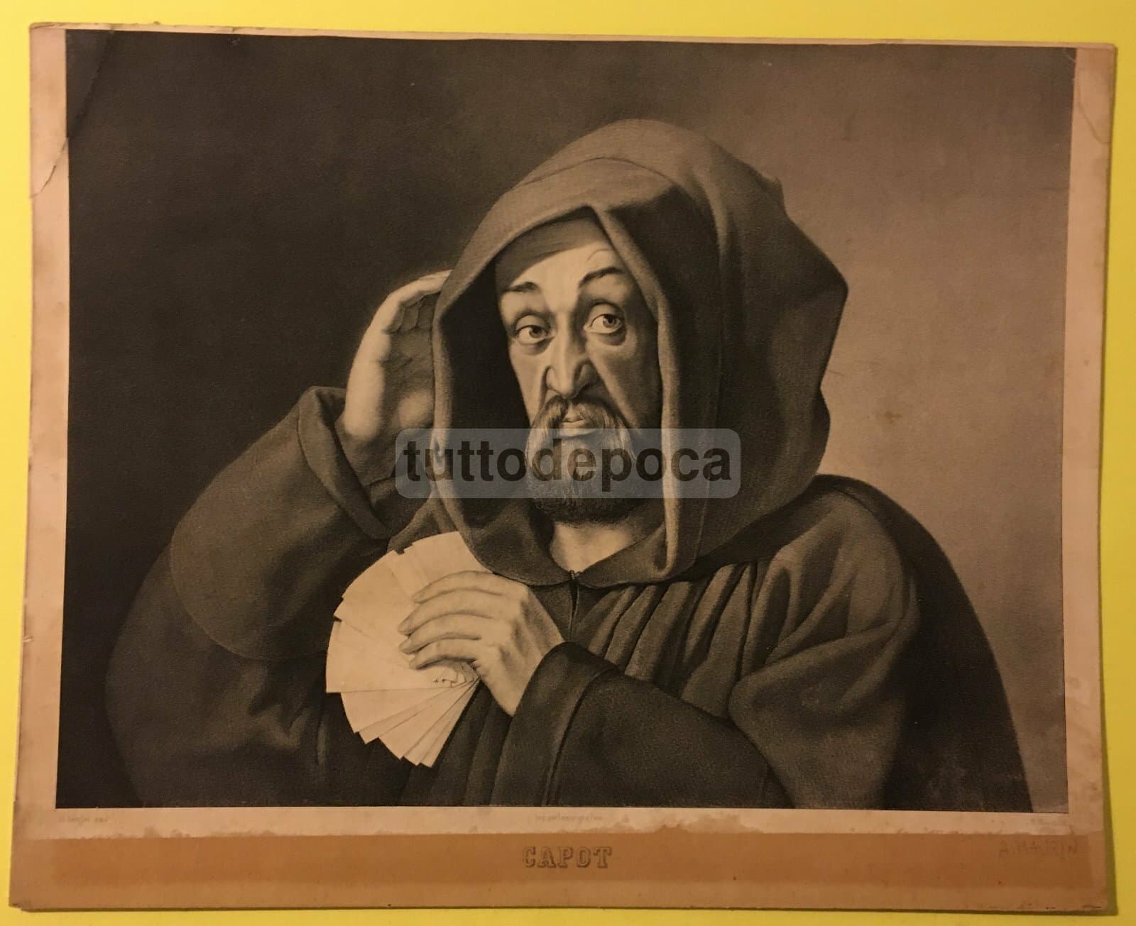 **Madame Adele de Zehenee Bazilewitch**. Interessante biglietto da visita d'epoca, riconducibile a una nobildonna europea, caratterizzato dall'intestazione sormontata da due piccoli stemmi allegorici di tipo araldico. * **Dimensioni**: circa 6x9,5 cm. * **Supporto**: unico foglio su cartoncino leggero. * **Tecnica**: impresso al recto, bianco al verso. * **Epoca**: databile alla prima metà del '900 (circa anni '20). Esemplare di notevole interesse araldico e storico-collezionistico. La rarità è determinata dalla tiratura limitata tipica dei biglietti da visita privati dell'epoca. **Condizioni**: discreta conservazione generale; presenta segni e difetti d'uso e d'epoca, fioriture sparse e piccole macchie marginali.