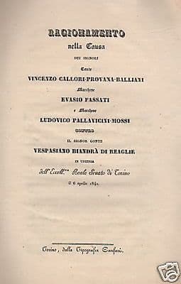 Allegazione Legale Torino 1840 Nobiltà Piemontese Reaglie