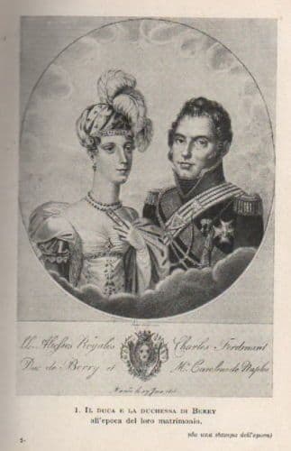 MANLIO LUPINACCI IL SOGNO DELLA DUCHESSA DI BERRY (1816-1833) Milano, Mondadori, 1927 Cm.19, pp. 307, bross. edit. (difetti) Interessante edizione originale antica e d'epoca, ampia trattazione relativa ad una pagina di storia ottocentesca, con anche alcune immagini illustrative, il tutto di impossibile sintesi, ma di cui è possibile avere un sommario dai titoli di alcuni capitoli: *PROLOGO* *IL FIGLIO DEL MIRACOLO* *CARLO X* *LUGLIO 1830* *ESILIO* *PETIT PIERRE* *VANDEA 1832* *BLAYE* *IL DOTTOR PROSPERO MENIERE* *ANNA MARIA ROSALIA* *EPILOGO* con anche una sintesi di albero genealogico della casata dei Borbone, da Luigi XIII....fino a Ferdinando II e a Luisa Isabella e Enrico,... e numerose tavole illustrative, con ritratti e documenti vari relativa alla nota duchessa di Berry DI INTERESSE STORICO, BIOGRAFICO, CULTURALE, BIBLIOGRAFICO Discreta conservazione generale, segni e difetti d'uso e d'epoca, sparse fioriture, legatura in brossura allentata e con rotture al dorso e piegature o sgualciture marginali, complessivamente però opera ben conservata e di piacevole lettura.