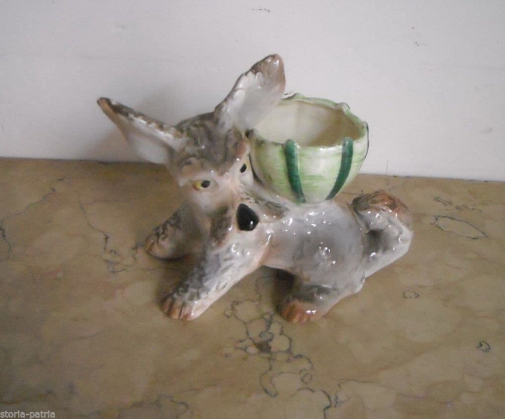Decorativa antica scultura raffigurante un simpaticissimo cane, con sul dorso un cesto, molto realistico e di bella policromia; scultura in ceramica o terraglia, di belle dimensioni, misura circa cm. 15x9 (x circa cm. 11 di altezza); marchio disegnato in verde sotto la base "LE/Italy" probabilmente ascivibile alla ceramista Elsa Lagorio (?); databile alla prima metà del '900. Molto decorativo e da collezione! Buona conservazione generale, segni e difetti d'uso e d'epoca, segni di vecchia polvere o sporco, ancora così come rinvenuto in una vecchia soffitta di famiglia, il tutto così come dalle immagini allegate. *(le immagini allegate raffigurano particolari dell'intero oggetto, eventuali ulteriori informazioni a richiesta)* [](https://img808.imageshack.us/i/cane5a.jpg/) [](https://img695.imageshack.us/i/cane5l.jpg/) [](https://img822.imageshack.us/i/cane5m.jpg/) [](https://img10.imageshack.us/i/cane5o.jpg/) [](https://img27.imageshack.us/i/cane5p.jpg/)