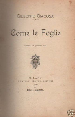 Come Le Foglie Di Giuseppe Giacosa Prima Edizione Treves 1902