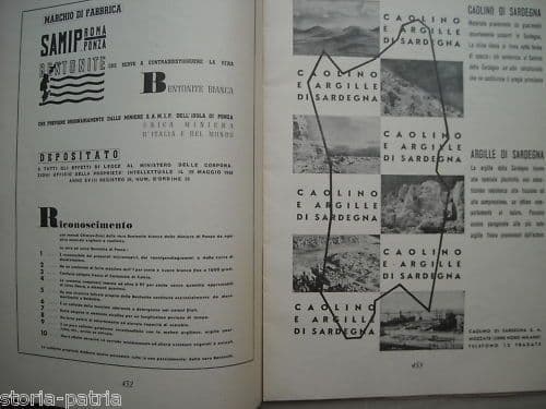 Materie Prime d'Italia e dell'Impero *Rassegna Mineraria Mensile* Roma, a. V, n. 12 (dicembre 1940) Cm. 29, pp.(da pag. 449 a pag. 504), bross. edit. figurata (difetti) Interessante edizione antica e d'epoca, bella pubblicazione periodica specialistica, inerente ricerche e studi e cronaca varia relativa alla geologia e alle miniere, ai minerali e al loro trattamento,... con in particolare i seguenti scritti o immagini: *L'Agro Pontino durante l'era glaciale (riferimenti al Lazio, al Monte Circeo, immagini dell'escavazione del Canale Mussolini, immagine della spiaggia marina fossile nelle scarpate del Canale Mussolini e altre immagini di altri ritrovamenti tra cui un corno di bue; e riferimenti a Littoria, ing. Scarani, E. Tongiorgi, ...con anche immagini di pietre e selci,...)* *Il problema delle rocce madri nella ricerca del petrolio in Italia (M. Gortani): con immagini di sonda rotary e ...e riferimenti a Casale Monferrato, prof. Dal Piaz, Montegibio, Langhiano, Retorbido, Salsomaggiore, Lagune di Sasso, Sogliano al Rubicone, Marche, valle del Pescara, Valle Latina, Pietramala, Porretta, Appennino Lucano, Vietri di Potenza, S. Angelo dei Lombardi, sottosuolo Padano, ....* *L'età geologica determinata con processi radioattivi naturali* *illustrazione a piena pagina di uno stand della mostra provinciale del minerale di Pesaro* *illustrazioni di particolari del giacimento di Ribolla, presso Grosseto* *La siderurgia e metallurgia nel domani dell'Africa O.I. (V. Ravizza)* *L'invito a cinque pittori del Lazio è lanciato (per una mostra di arte mineraria)* *Incenso della Migiurtina (C. Bozza), con illustrazioni* *Quesiti tecnici dei saponieri* *Recensioni-notiziario (autarchia dell'industria del vetro, scisti bituminosi de Monte Plauris, giacimenti di grafite scoperti presso Millesimo, miniere di rame a Monte Rossola, attività mineraria in Valle d'Aosta, miniera di Petazza, ricerche minerarie in Liguria, la "buca del serpente" presso Ascagnano di Perugia, marmi e graniti di Harrar, scisti bituminosi dell'Impero, l'alcole della palma Dum dell'Impero, le miniere di nikel di Petsamo, miniere di piombo presso Cartacena, mercato internazionale del ferro, ...)* *con anche alcune inserzioni pubblicitarie, anche figurate o a piena pagina:* *corone per sondaggi Gullino* *Crotti bilancia (Campogalliano)* *locomotori Orenstein e Koppel (Sesto S. Giovanni)* *compressori e pompe Idromeccanica Italiana (Milano)* *Breda, macchine per trattamento dei minerali; ricerche minerarie* *Loro e Parisini* *Kaelble, motori diesel e trattori* *Serafini Pompe* *Athena macchien calcolatrici* *Cartiere Burgo (con illustrazione a piena pagina a firma Varrone ?)* *Samip, Roma-Ponza, Betontite* *Caolino e argille di Sardegna (con alcune illustrazioni)* *Miniera San Romedio (Mollaro, Trento)* *Consorzio Produttori Sacchi Carta* *Banco di Sicilia* *...* *[https://img215.imageshack.us/img215/303/materie9b.jpg](https://img215.imageshack.us/img215/303/materie9b.jpg) [https://img12.imageshack.us/img12/1379/materie9c.jpg](https://img12.imageshack.us/img12/1379/materie9c.jpg) [https://img33.imageshack.us/img33/2317/materie9f.jpg](https://img33.imageshack.us/img33/2317/materie9f.jpg) [https://img851.imageshack.us/img851/13/materie9a.jpg](https://img851.imageshack.us/img851/13/materie9a.jpg) [https://img59.imageshack.us/img59/91/materie9l.jpg](https://img59.imageshack.us/img59/91/materie9l.jpg) [https://img577.imageshack.us/img577/7641/materie9n.jpg](https://img577.imageshack.us/img577/7641/materie9n.jpg) [https://img805.imageshack.us/img805/9586/materie9p.jpg](https://img805.imageshack.us/img805/9586/materie9p.jpg) [https://img689.imageshack.us/img689/4656/materie9r.jpg](https://img689.imageshack.us/img689/4656/materie9r.jpg) [https://img171.imageshack.us/img171/3580/materie9s.jpg](https://img171.imageshack.us/img171/3580/materie9s.jpg) * Di interesse geologico, storico-locale, specialistico, pubblicitario, tecnico, bibliografico Buona conservazione generale, segni e difetti d'uso e d'epoca, sgualciture e difetti vari marginali. [](https://img215.imageshack.us/i/materie9b.jpg/) [](https://img12.imageshack.us/i/materie9c.jpg/) [](https://img33.imageshack.us/i/materie9f.jpg/) [](https://img851.imageshack.us/i/materie9a.jpg/) [](https://img59.imageshack.us/i/materie9l.jpg/) [](https://img577.imageshack.us/i/materie9n.jpg/) [](https://img805.imageshack.us/i/materie9p.jpg/) [](https://img689.imageshack.us/i/materie9r.jpg/) [](https://img171.imageshack.us/i/materie9s.jpg/)