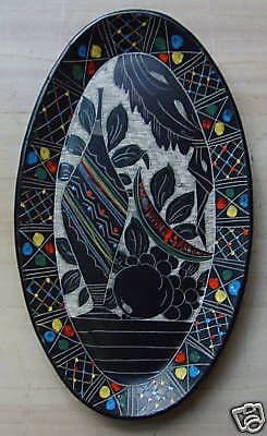 Artistica vecchia ceramica *Decorativo pannello a fondo nero, con elaborata lavorazione artistica -incisa e colorata- raffigurante una natura morta con frutta e bottiglia,* tipica espressione dell'arte della metà del Novecento opera di probabile manifattura umbra, prodotta e marcata MG / Gualdo / T *Opera ascrivibile a manifattura di Gualdo Tadino; belle dimensioni, di forma ovale di cm.40x23 circa; marchio-firma incusso al verso.* Artistico decorativo e da collezione per le numerose tematiche collegate e per cultori di ceramiche italiane del Novecento. Buona conservazione generale, usuali segni o difetti d'uso o d'epoca o di fabbricazione, provvisto di gancetto per appenderlo al muro; il tutto così come da immagini allegate. $$$$$$$$$$$$ Guarda le altre mie aste! \>>Tutte le mie offerte sono garantite originali e d'epoca<< * * * Il 07-ott-09 alle 17:52:50 CEST, il venditore ha aggiunto le seguenti informazioni sull'oggetto: Preferito il pagamento con bonifico bancario, a richiesta eventuali altre modalità; l'opzione di pagamento con paypal è valida prevalentemente per i Paesi extraeuropei, la sua accettazione potrebbe comportare l'aggiunta delle relative spese, mentre la spedizione sarà fatta solo dopo l'avvenuto trasferimento dei relativi fondi: a richiesta eventuali altre informazioni.