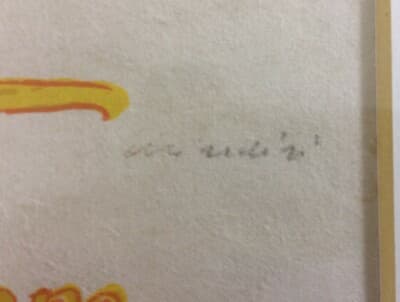 Interessante illustrazione artistica dell'artista **Gianpaolo Berto**, risalente al **1968**. L'opera raffigura una natura morta composta da frutta (pera, uva) e un bicchiere. * **Tecnica**: Serigrafia a colori su carta. * **Dimensioni**: 49x66 cm circa (foglio intero, margini irregolari). * **Firme**: Firmata a stampa in basso a sinistra e firmata a matita dal maestro nel margine inferiore destro. **Stato di conservazione**: L'esemplare si presenta in modesta conservazione generale. Sono presenti evidenti segni del tempo e difetti d'uso tra cui fioriture sparse, bruniture, ampie gore (macchie d'umidità) e sgualciture marginali. Segni di vecchia umidità visibili in particolare sul retro.