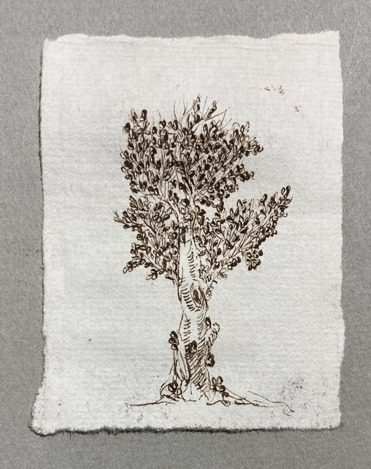 **Trani**, *Convento di S. Teresa*: porta e finestra medievali. Fotografia antica originale di grandi dimensioni raffigurante la prospettiva architettonica del celebre monumento religioso pugliese. L'immagine documenta con precisione i dettagli scultorei della porta e della finestra di epoca medievale. * **Epoca**: fine XIX - inizio XX secolo. * **Dimensioni**: cm 34x20 circa (intero foglio). * **Tecnica**: fotografia su carta leggera. * **Condizioni**: stato di conservazione modesto; sono presenti segni d'uso, fioriture sparse, pieghe e una macchia d'epoca localizzata in corrispondenza della finestra. Il supporto cartaceo leggero suggerisce un intervento di restauro o montaggio su supporto rigido.