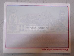 Di interesse storico-locale, pubblicitario, araldico e collezionistico. Esemplare complessivamente ben conservato e mai utilizzato.