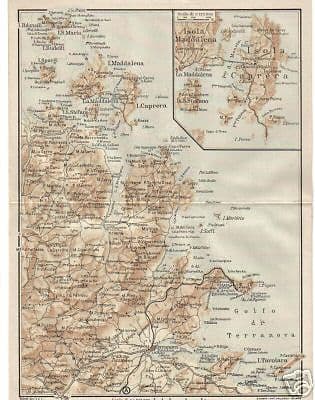 Mappa Antica Sardegna Arcipelago Maddalena Caprera Vallardi 1918