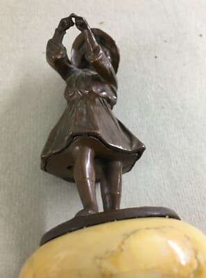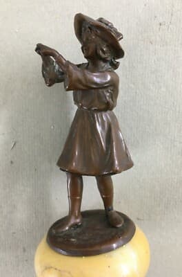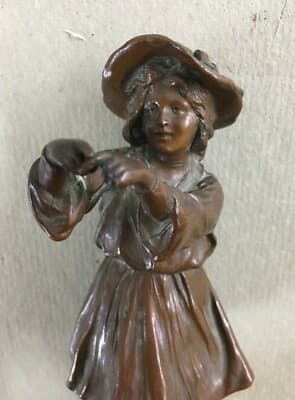 Scultura In Metallo Bronzato Raffigurante Giovane Donna Con Cappello