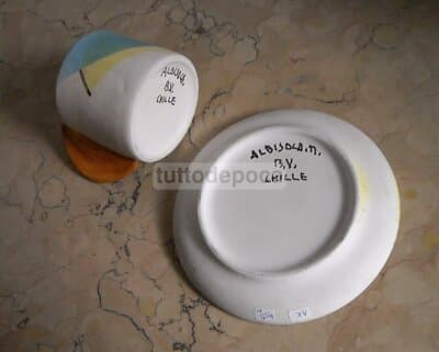 Tazza Con Piattino In Ceramica Di Albissola, Decoro Futurista Attribuito A Francesco Cangiullo