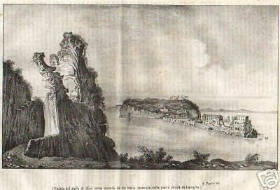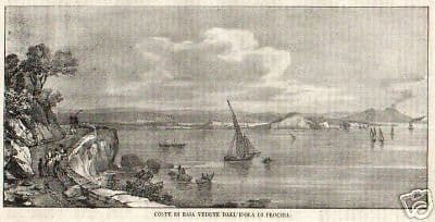 Veduta Antica Coste Di Baia E Procida, Litografia Originale 1800