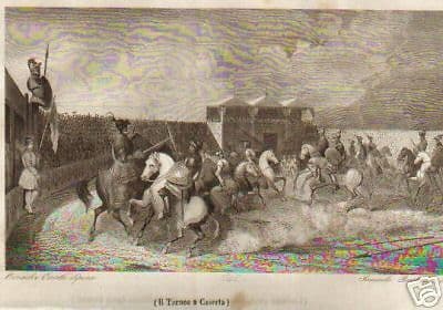 Torneo Cavalleresco A Caserta. Incisione Originale, 1847