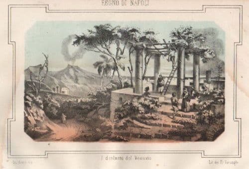 Vesuvio: Litografia Originale Dell'800. Barbieri, Terzaghi, Editore Pagnoni.