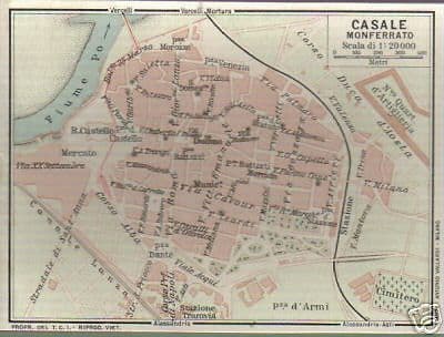 Mappa Topografica Antica Di Casale Monferrato Anni '20 '30 Vallardi
