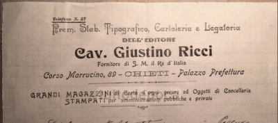 Abruzzo, Chieti: Cartoleria, Tipografia E Legatoria Giustino Ricci Carta Intestata Pubblicitaria