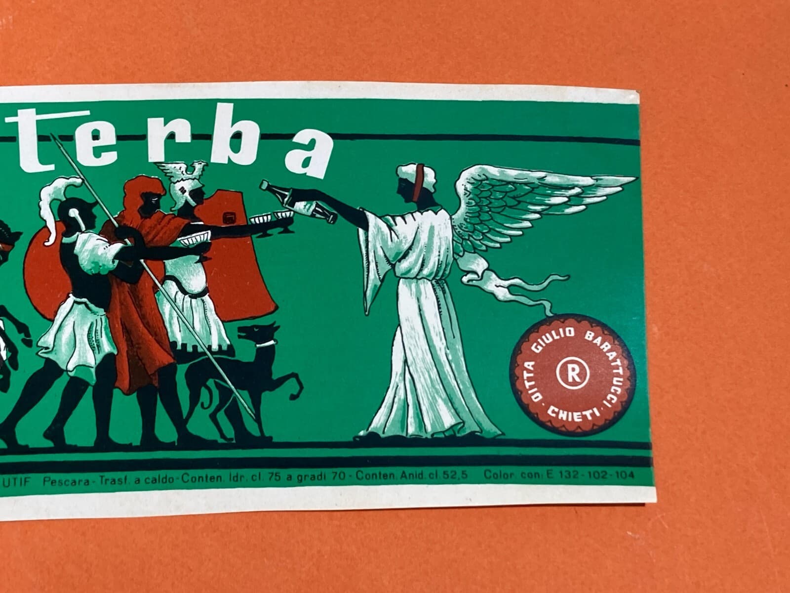 Abruzzo, Chieti: Distilleria Barattucci, Etichetta Originale Amaro Centerba