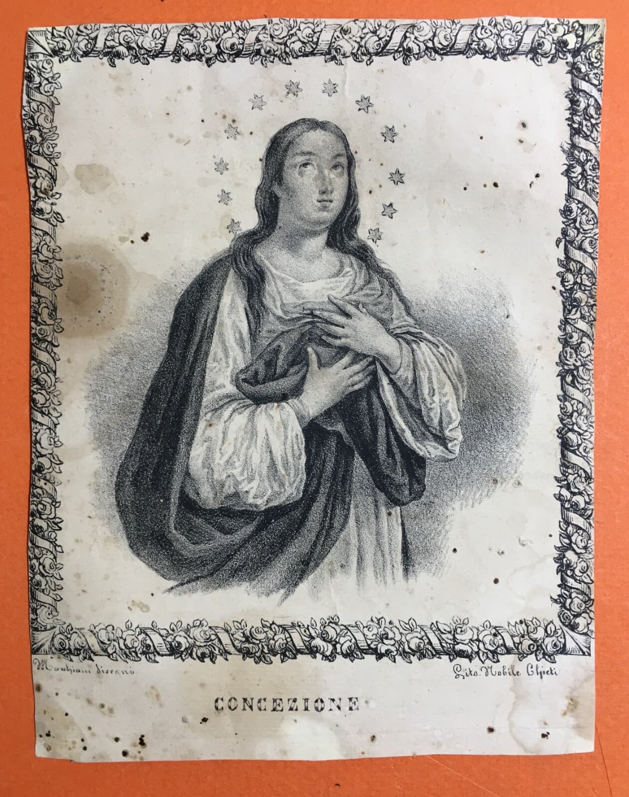 Abruzzo, Chieti: Immacolata Concezione. Antica Stampa Popolare Marchiani Nobile
