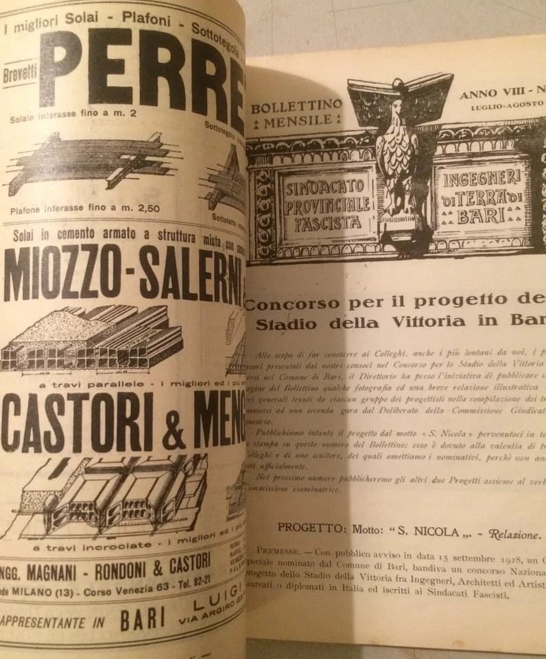 Puglia, Bari: Ingegneria, Stadio Della Vittoria, Concorso E Prezziario In Edilizia, 1929