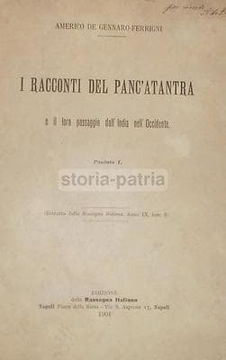 Letteratura, Filologia E India: I Racconti Del Panc'Atantra Americo De Gennaro Ferrigni, Napoli 1901