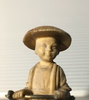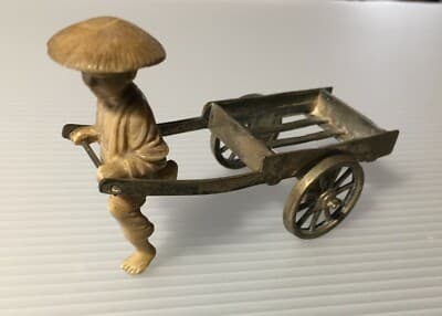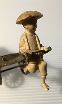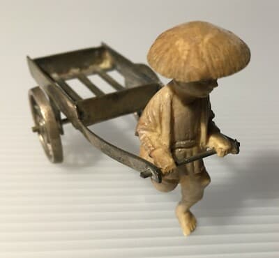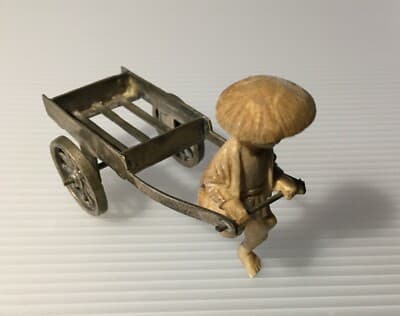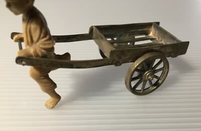 Soprammobile Decorativo: Cinese Con Carretto In Argento E Osso