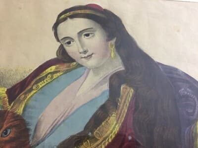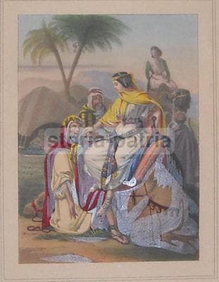 Arte Decorativa Antica Litografia A Colori: Rebecca Sul Cammello, Isacco, Biblica
