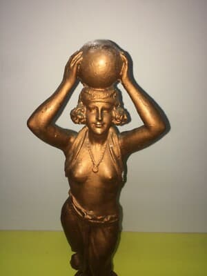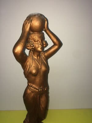 Giocoliera Orientale: Scultura Decorativa In Gesso Ramato, Stile Liberty