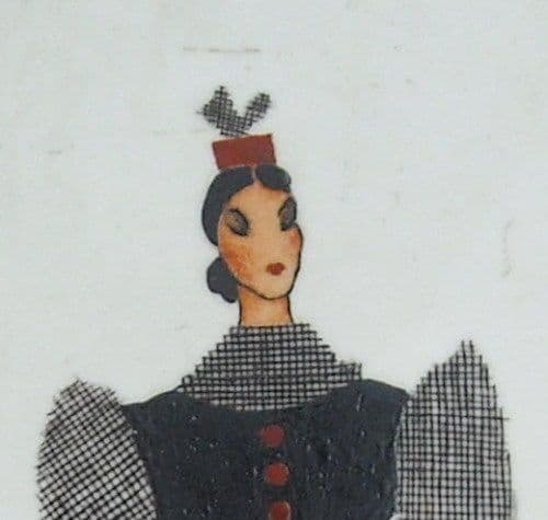 Mattonella In Ceramica Con Costume Tradizionale Sardo, Anni '30