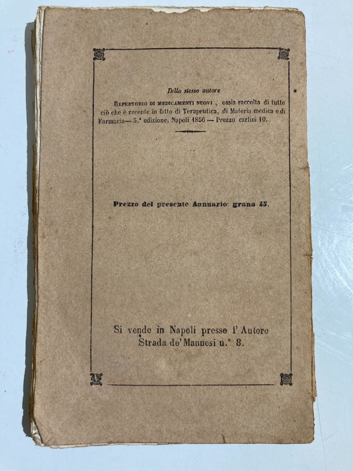 Medicina, Farmacia, Chimica Ed Erboristeria A Napoli. Prota Giurleo: Antico Ricettario (1879 1880)