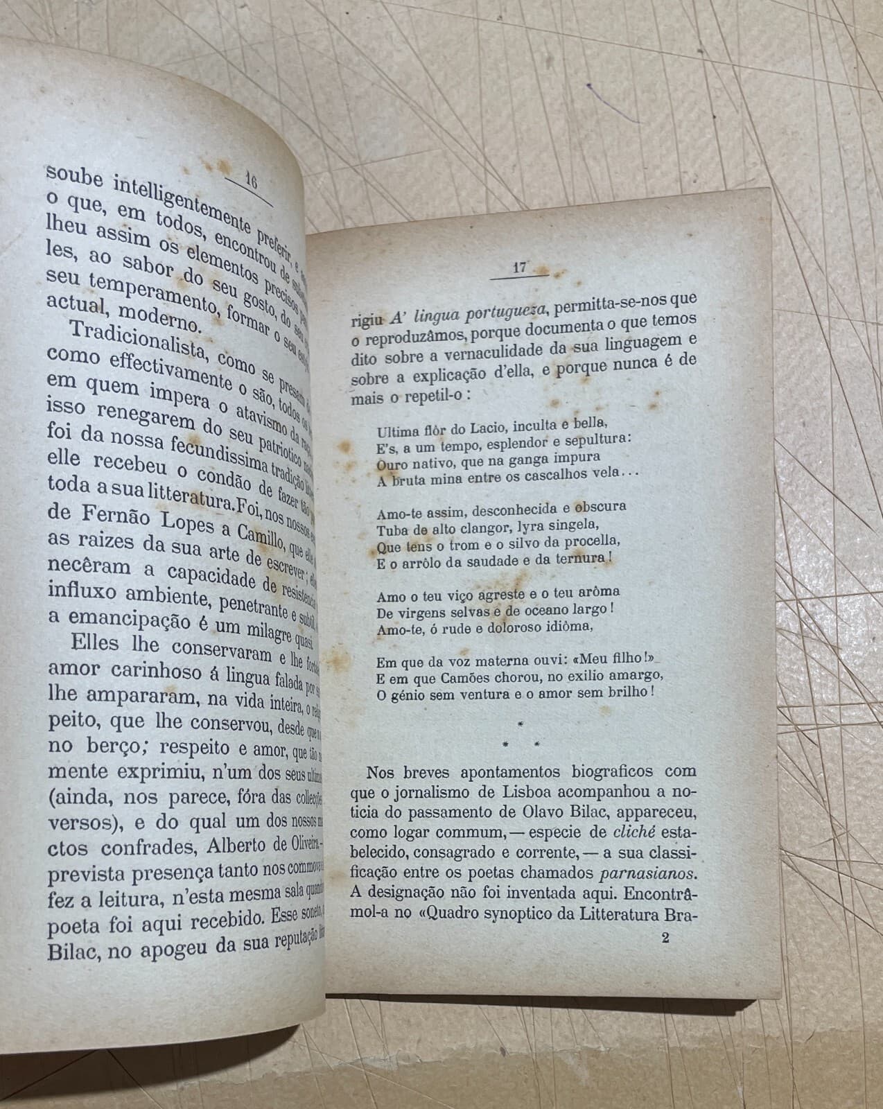 Letteratura Brasiliana, Olavo Bilac, Antica Edizione, Fernandes Costa, 1919