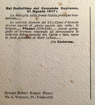 Marche, Militaria: Reduci Della Brigata Piceno, Reggimento Fanteria. Cadorna. Cartolina.