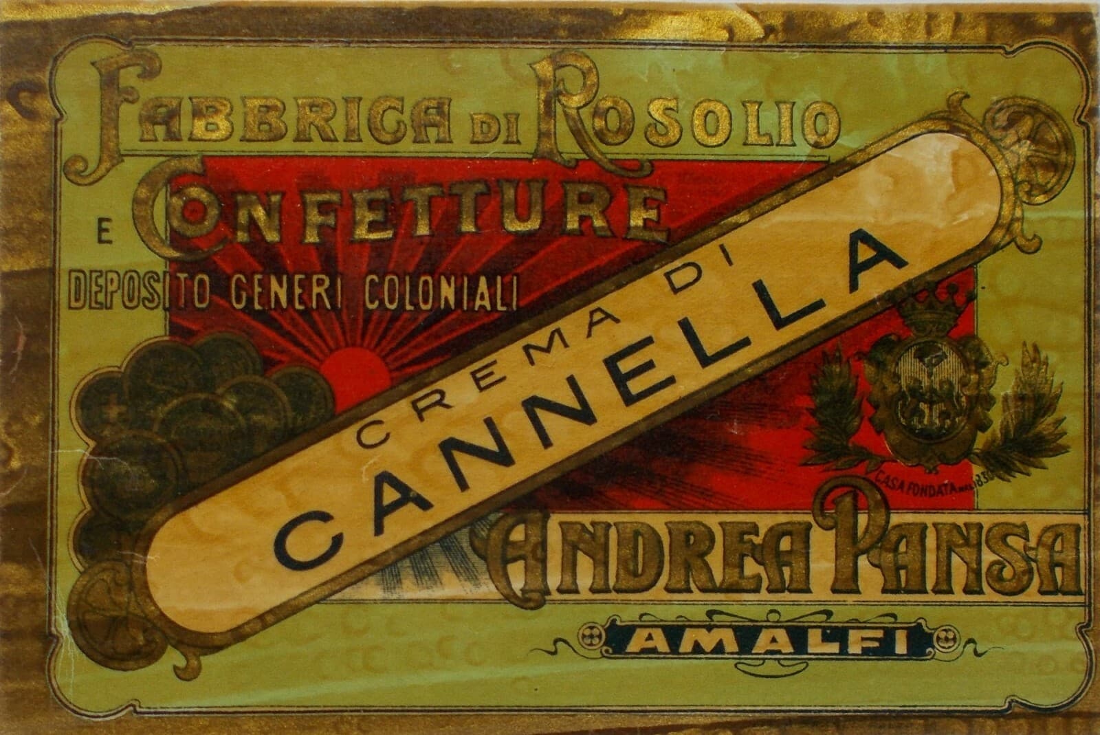 Campania, Amalfi: Etichetta Pubblicitaria d'Epoca Della Distilleria Pansa